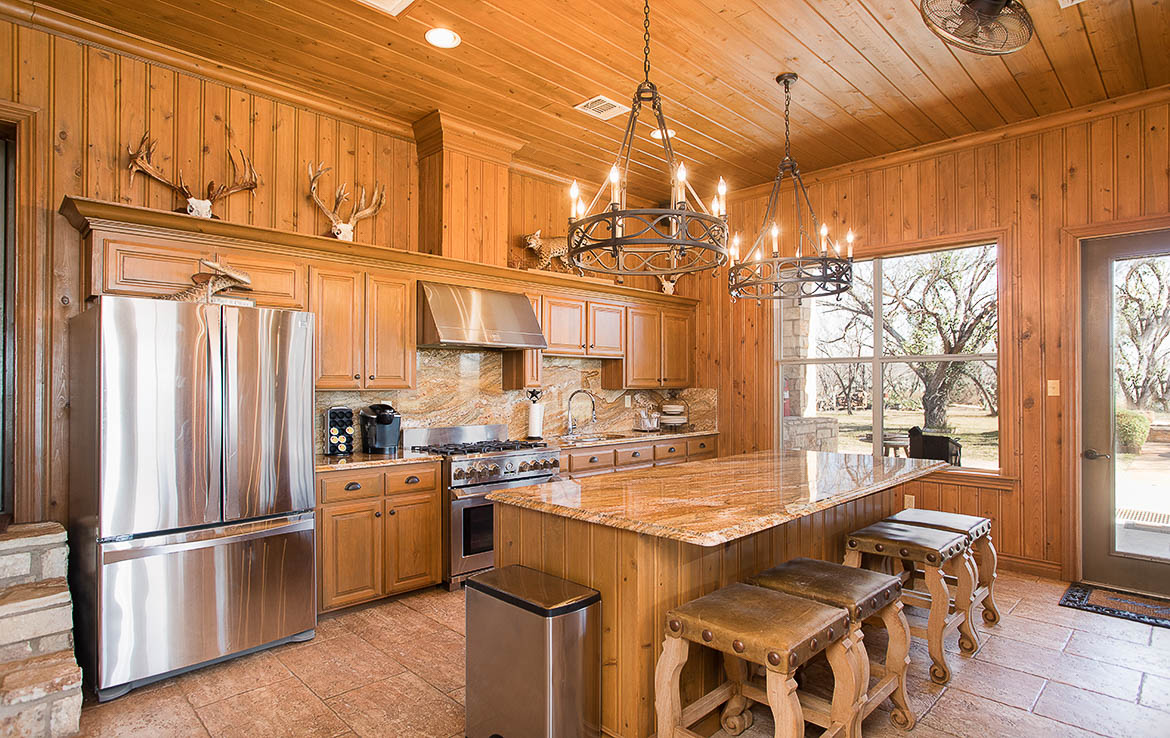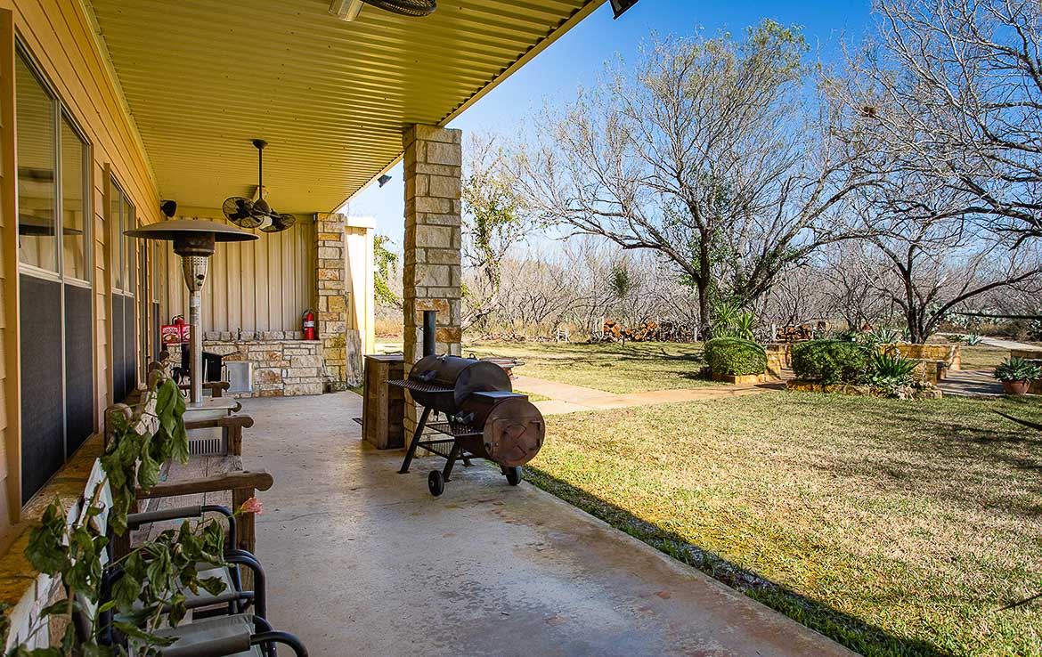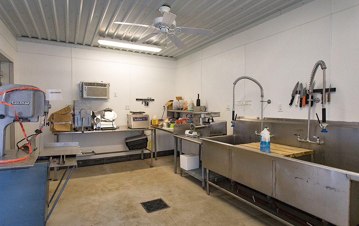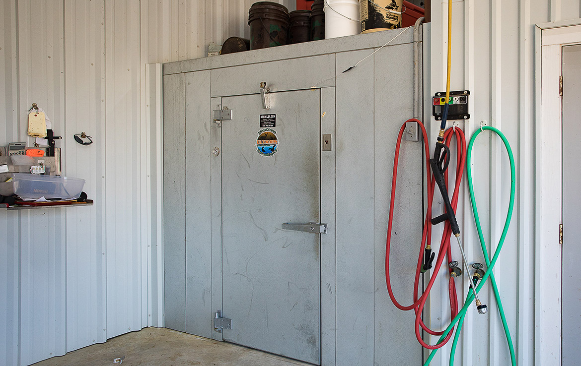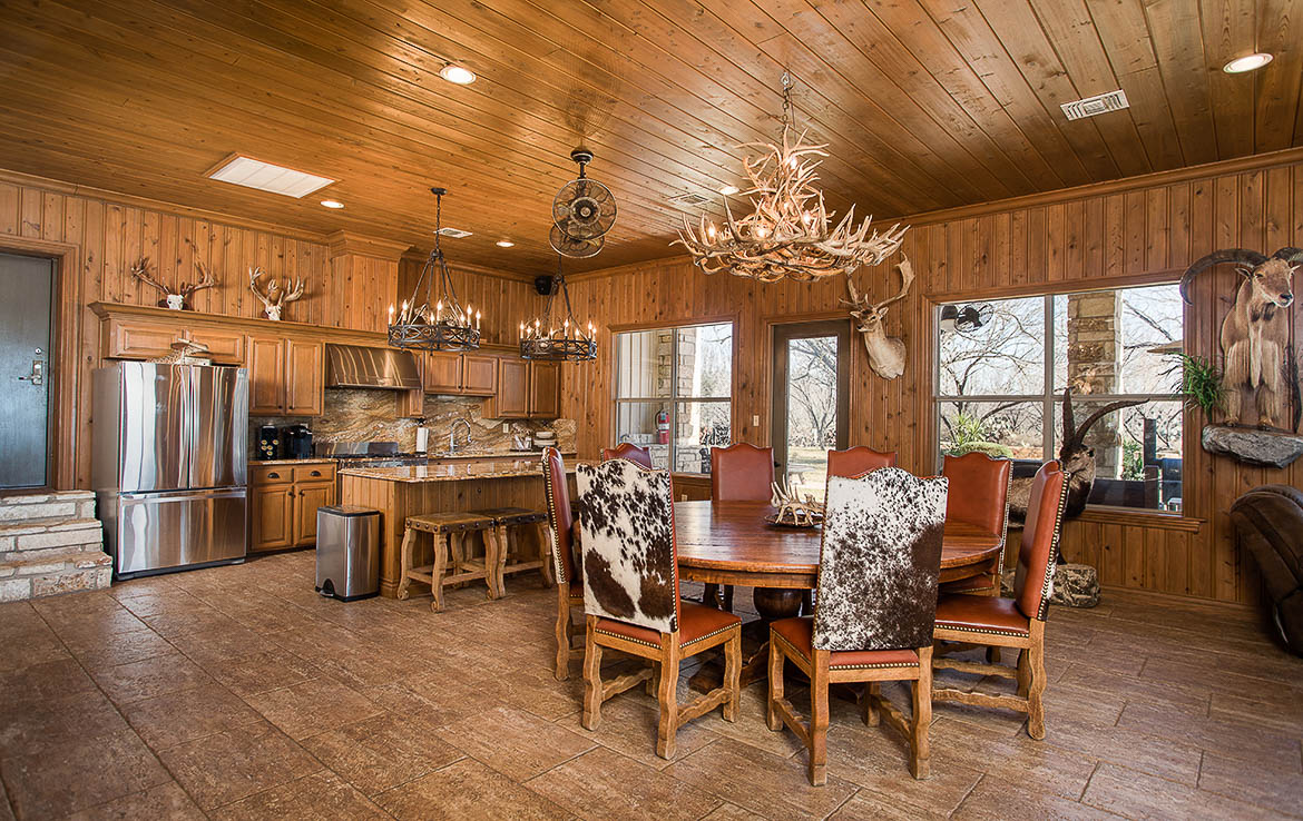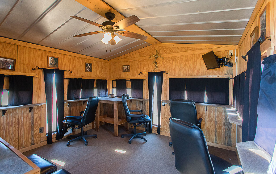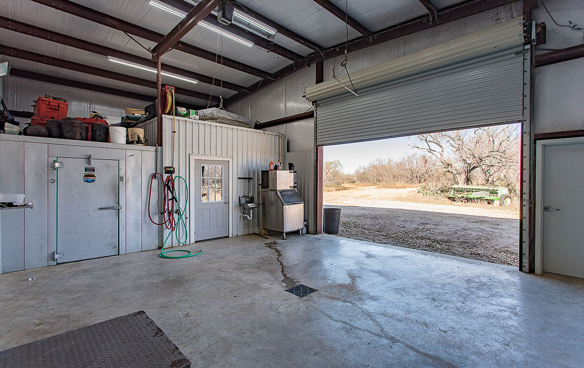 Adjacent to the lodge is a four-thousand square foot metal barn that houses a walk-in cooler, freezer, and cleaning and processing rooms. The cargo area has room for multiple hunting vehicles and rigs, as well as tools and equipment for ranch operations.