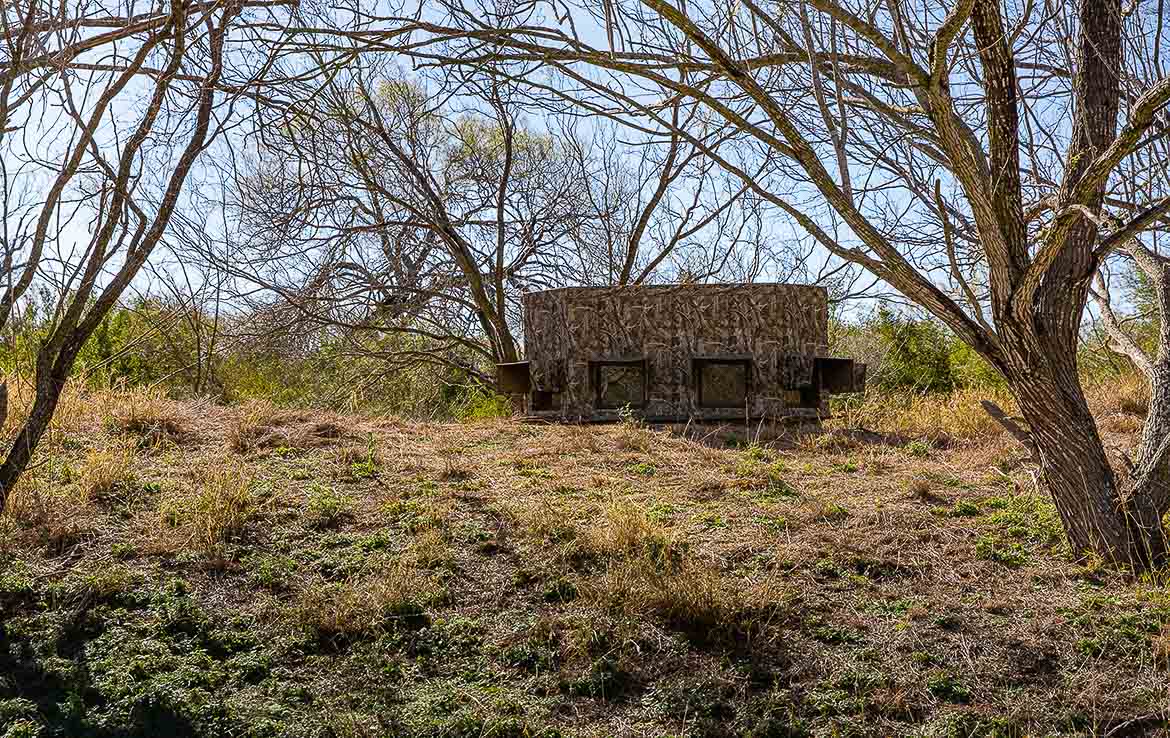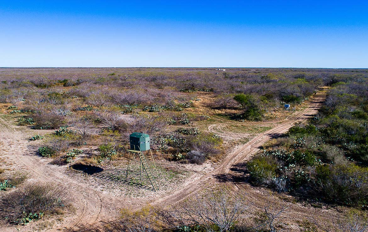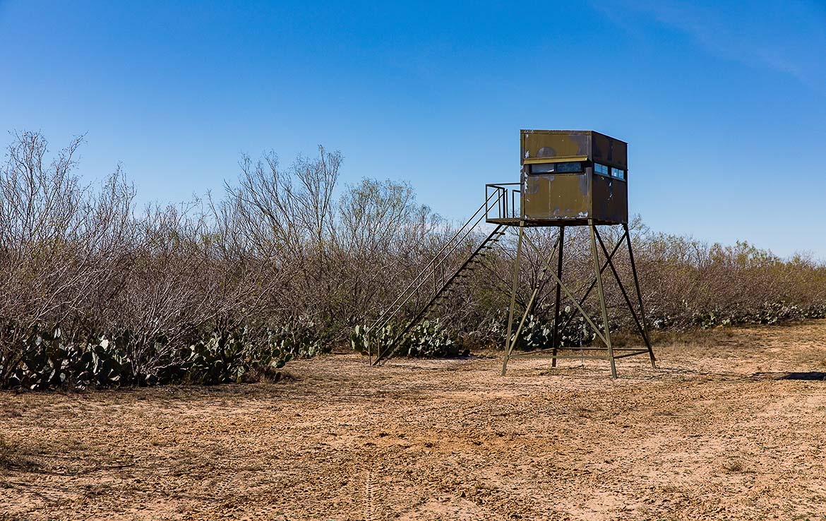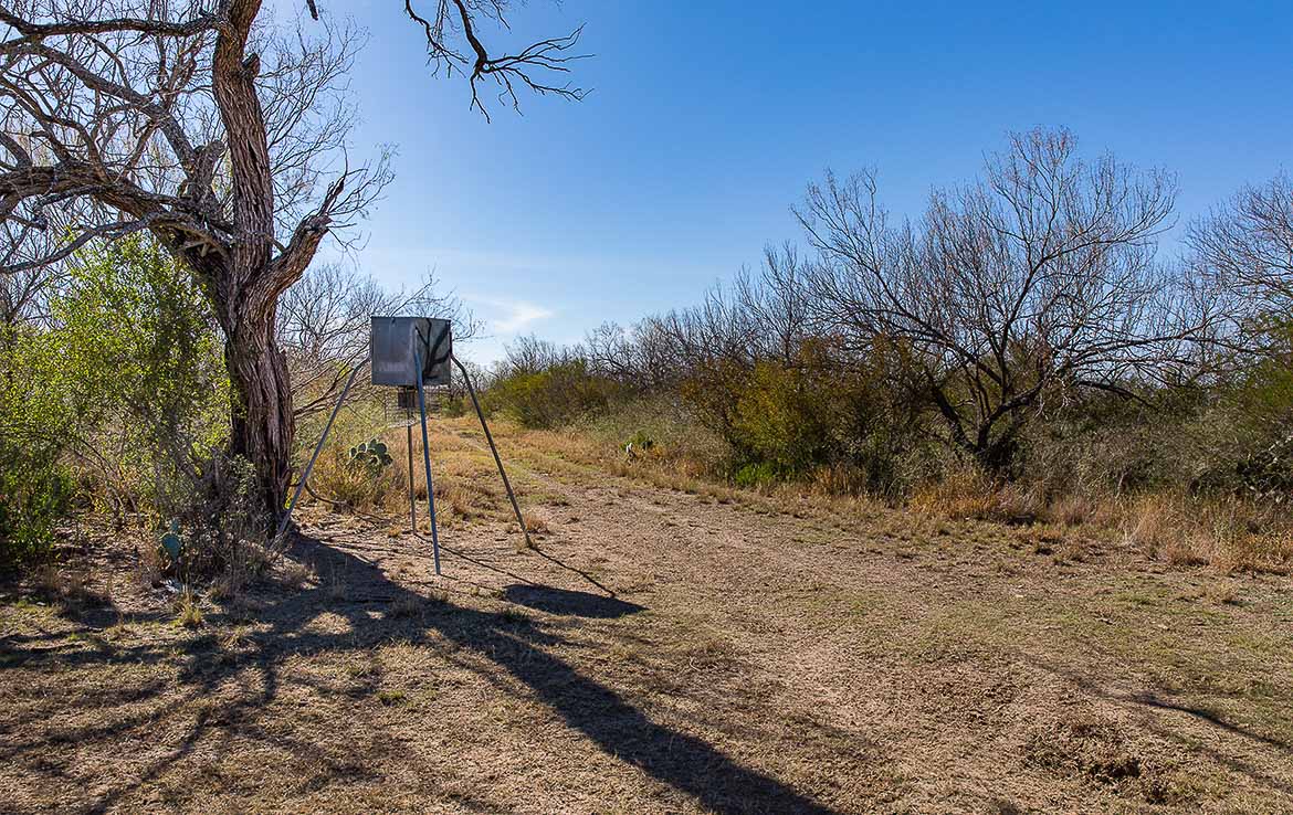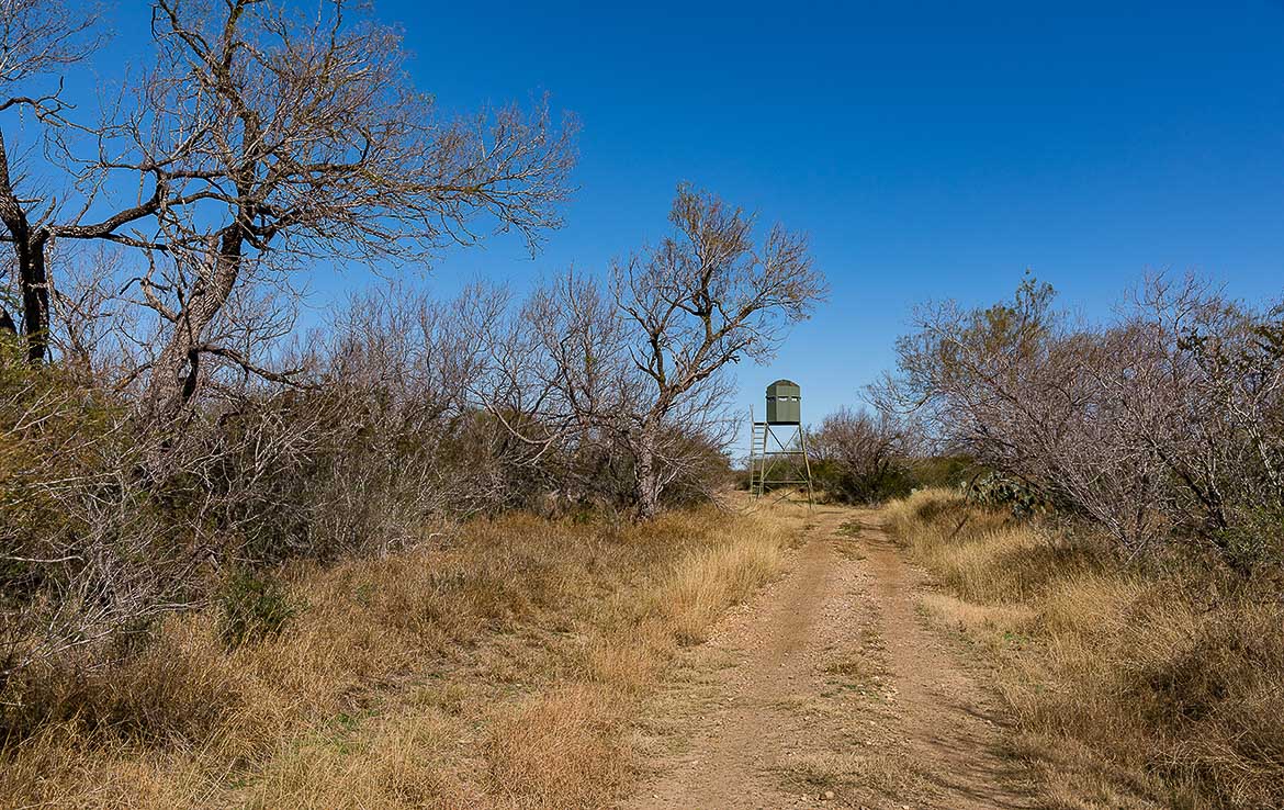 Hunting facilities are placed throughout the ranch, including tall hunting blinds and feeders, senderos, one enormous hunting blind with room for half a dozen hunters, and creature comforts such as water and electricity