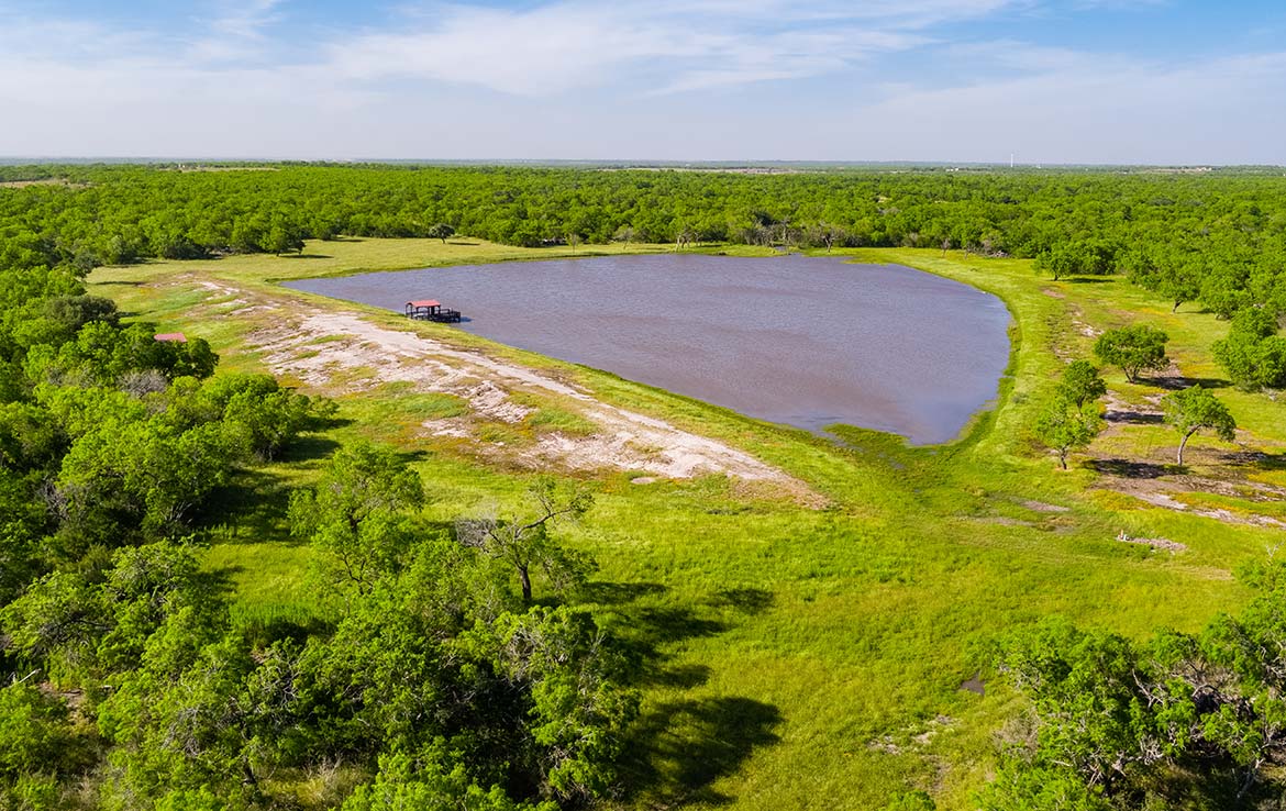 Miles of underground water lines span from two electric wells to supply water to the improvements, lakes, ponds, and troughs across the property. The largest lake, at an approximate seven-acres, features a covered fishing dock and a covered boat shed. Other ponds across the property feature a fishing pier, a drivable bridge, and a 100’± walkway bridge.