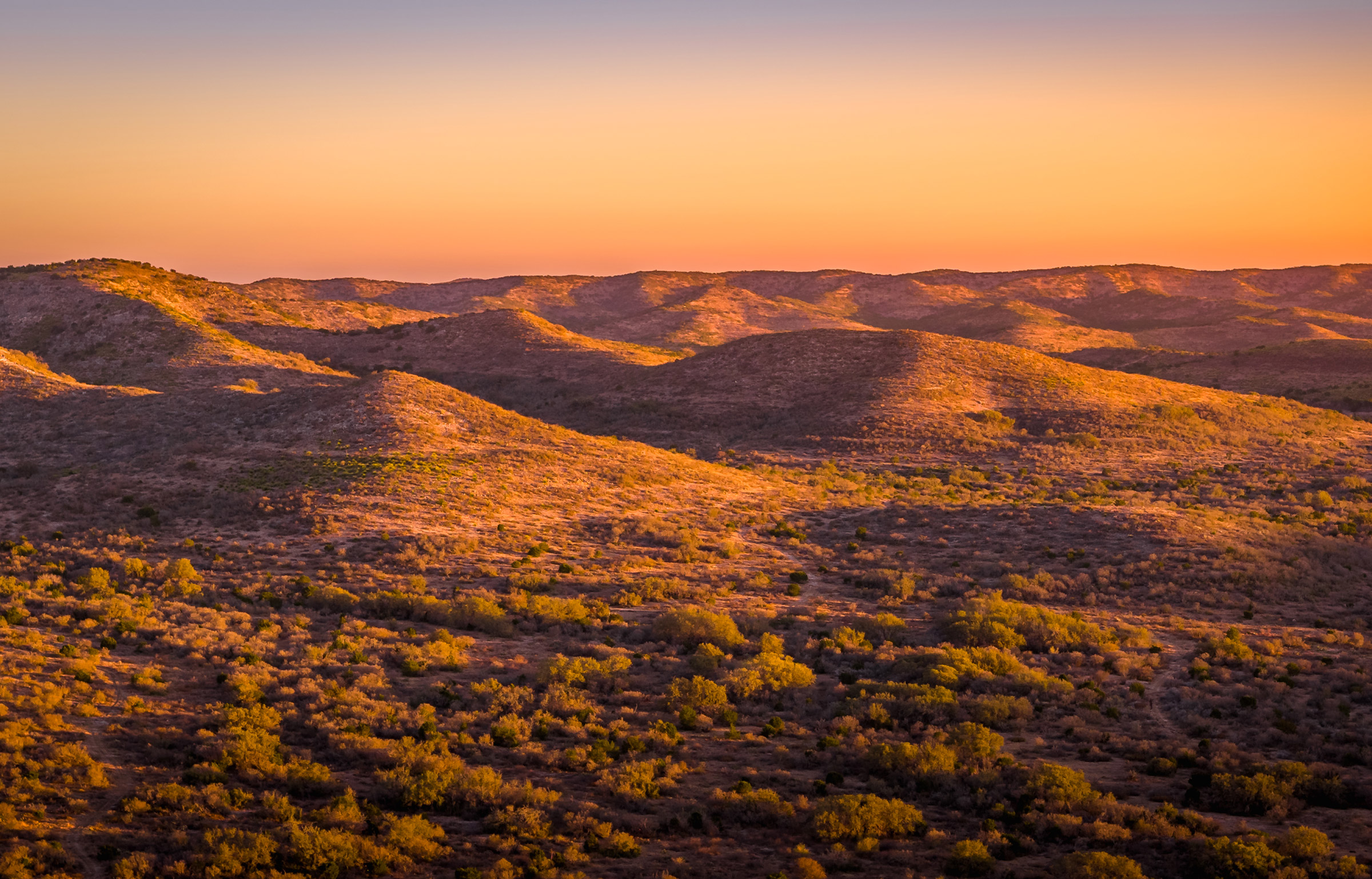 The property features rolling hills, mountains, and bluff terrain typical of the region, with dense native South Texas brush providing excellent wildlife habitat. Little Indian Creek, a wet-weather creek, crosses the ranch and serves as a natural drainage corridor. Perimeter fencing and cross fencing support livestock management while allowing for consistent wildlife movement across the property.